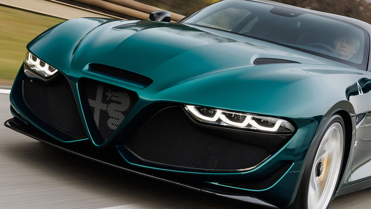 Cabe destacar que la idea de crear este coche viene de 2021, fecha en la que se cumplieron los 100 años de la colaboración entre la marca italiana y Zagato. Este ha creado una carrocería de fibra de carbono que presenta detalles tomados del SZ, como las jorobas del techo en la parte trasera o los faros principales con tres ópticas separadas en cada faro.