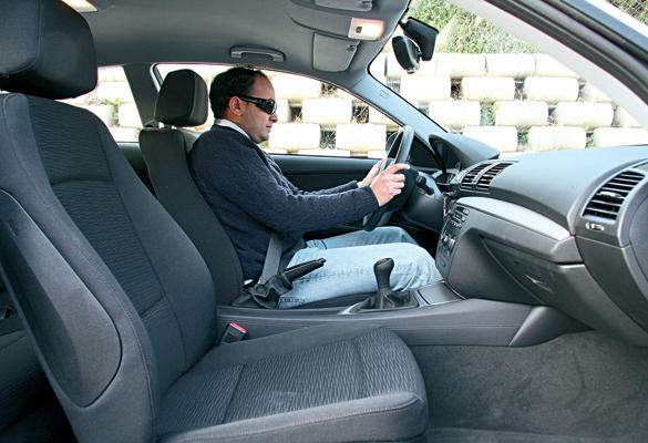 El asiento de esta versión básica tiene un buen mullido por dureza -no cansa en un viaje largo- y agarra lo suficiente; no merece la pena gastarse 635e en los asientos deportivos opcionales.Como en todos los BMW, el cinturón no se regula en altura: según la marca, quien vaya bien sentado no lo necesita.La postura de conducción es más deportiva que en el Mégane, pero también es más complicado acceder y salir.Es suficiente hacia adelante, aunque la trasera es reducida por el pequeño tamaño de la luneta.