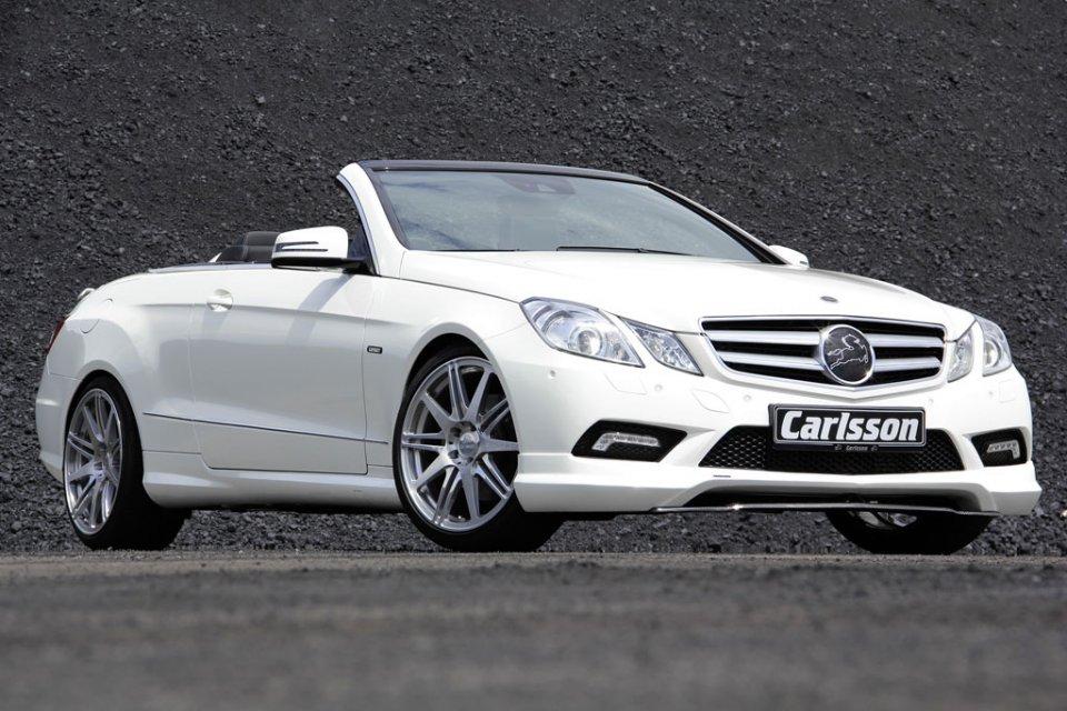 Como es tradicional por estas fechas, el preparador alemán Carlsson se ha puesto manos a la obra para dar una vuelta de tuerca más a algún modelo de Mercedes, y qué mejor que hincarle el diente a uno de los últimos descapotables en llegar a la gama de la marca de Stuttgart, el Mercedes Clase E Cabrio. Por fuera vemos un chasis rebajado -concretamente 30 mm-, un paquete aerodinámico que incluye un nuevo difusor y spoilers en fibra de carbono, llantas de 20 pulgadas y doble salida de escape en acero inoxidable. Dentro también se nota la mano del preparador, que ha llenado el habitáculo de cuero, Alcantara y aluminio.