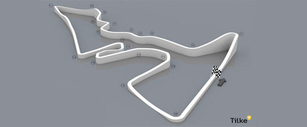 Apenas tres meses más tarde, ya tenemos aquí los primeros bocetos oficiales de la pista, un trazado de 5.472 metros de longitud con 20 curvas y continuos cambios de nivel, especialmente pronunciado al final de la recta de meta. El sello de Tilke queda más que patente: zonas reviradas, largas rectas y una horquilla muy cerrada que pone fin a una zona de alta velocidad.