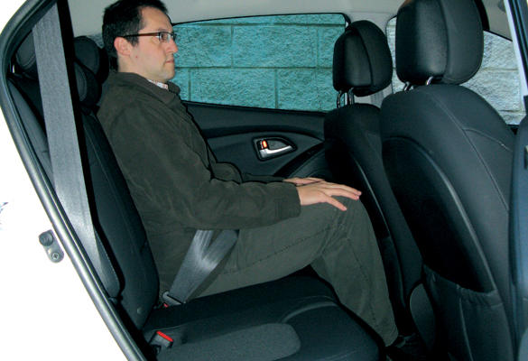 ¡Muy bueno!.-Por espacio detrás, el ix35 es mejor que el Kuga, al cual aventaja en altura, espacio para las piernas… Tampoco es mala la anchura y el suelo es casi plano; sin embargo, si viajan tres personas, las de los lados irán incómodas por el diseño de la banqueta.