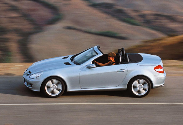 Con -un dedo- y en 22 segundos. El SLK incluye un techo duro electrohidráulico de serie, que se acciona a través de un mando que hay junto al freno de mano. En sólo 22 segundos, el techo se quita y se pone… siempre que estemos parados o circulemos a menos de 30 km/h. Plegado -roba- 92 litros al maletero.