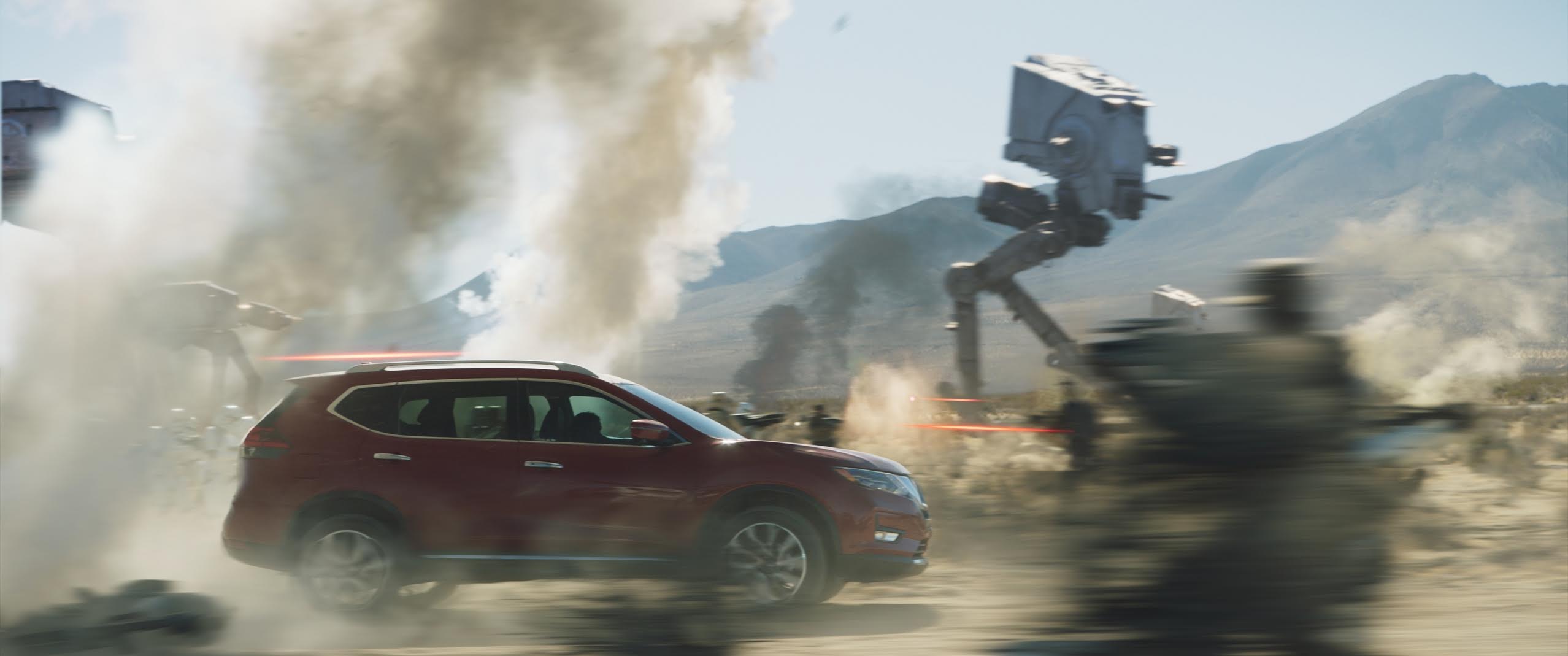 Con una duración de 30 segundos, la acción transcurre en una instalación ficticia de Nissan, donde supuestamente los ingenieros ponen a prueba los vehículos. Es una Tested-Battle en la que el modelo demuestra la eficacia de sus tecnologías de conducción (como el Intelligent All-Wheel Drive) y seguridad, como el Sistema de Frenos de Emergencia con Detección de Peatones, que actúa en las ruedas del Nissan y evitan atropellar personas… o clones galácticos.