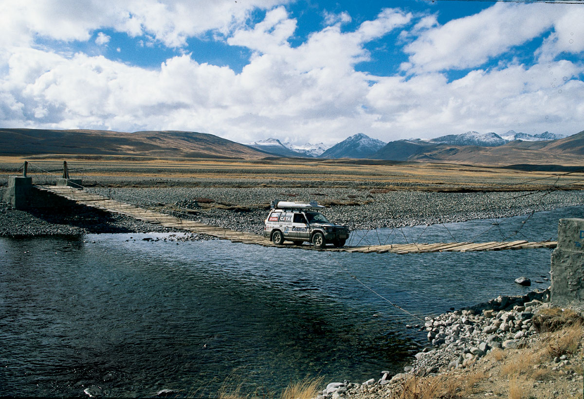 Surcar el valle de Kaghan hasta Chilas supuso tramos de pista abandonada esculpida en la roca viva con una puerta bloqueada por la pared rocosa y la otra que se abría en el vacío sin posibilidad de poder bajar del todoterreno. Incluso sin precipicio, la estrechez entre las grandes piedras marca el «no retorno» durante demasiados kilómetros. Pero surge un contratiempo: a 3.520 metros de altitud aparece un puente saqueado, suponemos que convertido en leña por los pastores. No nos queda más remedio que conformarnos con los tablones restantes, que, separados lo justo para que no se cuelen las ruedas, … daban la largura de nuestro Mitsubishi Montero. Con poco oxígeno, mucha paciencia, grandes esfuerzos y dosis de equilibrio, construimos rampas de piedra a la entrada y salida del ´puente´ y el primer tramo para subir el Montero. Luego vamos desplazando los tablones de atrás hacia delante para avanzar tablón a tablón y llegar a la otra orilla. Al otro lado, nuevos valles escondidos, idílicos lagos y paraísos perdidos rodando por la cima del mundo. Cualquier esfuerzo en el Himalaya es compensado con creces.