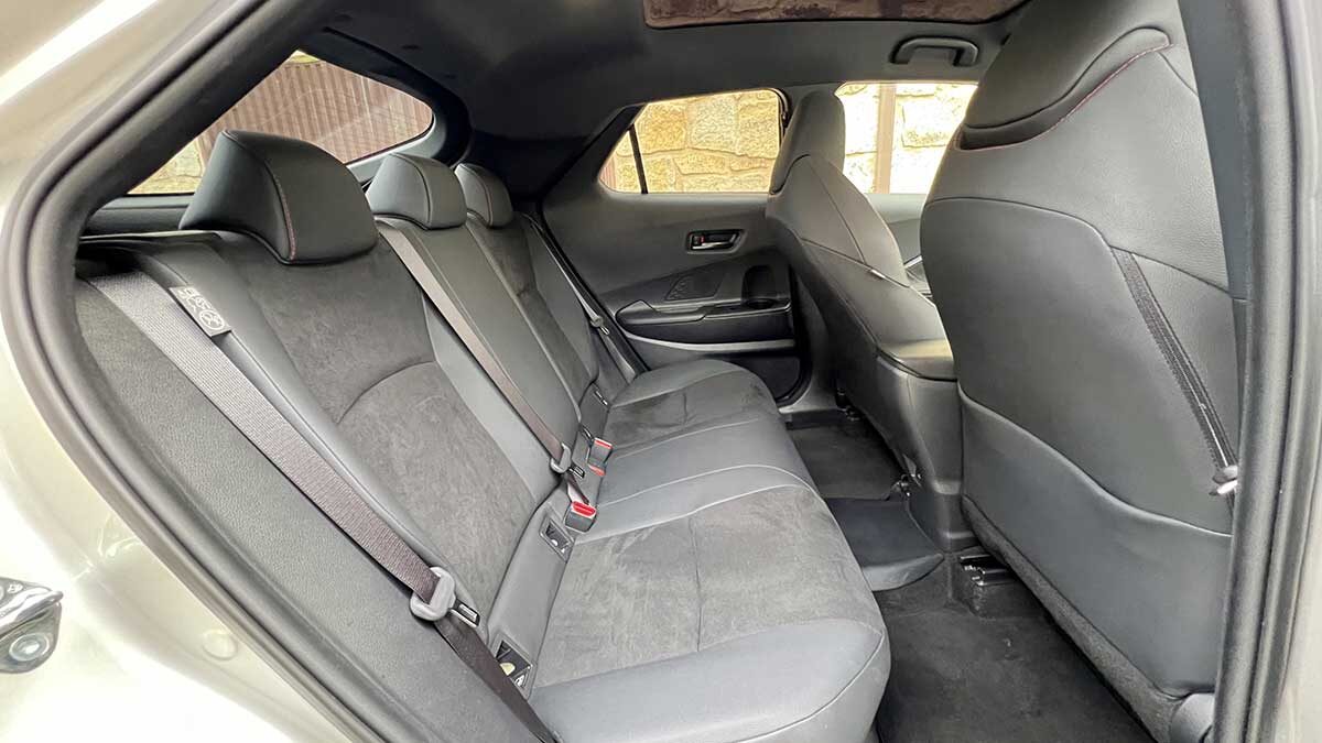 En cuanto a espacio, delante no hay mayor problema y la postura al volante es buena, con las piernas un poco más estiradas de lo habitual en los SUV’s. Además, los asientos deportivos del acabado GR Sport de esta prueba nos han convencido tanto por comodidad como por sujeción.