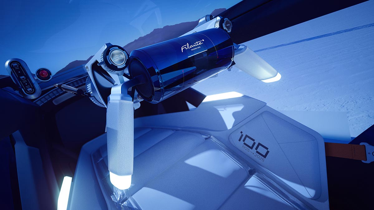 El acceso a la cabina se realiza a través de una burbuja transparente, que permite una visibilidad excepcional. En el centro del volante, una pantalla digital ultrafina muestra información esencial como la velocidad y la autonomía.