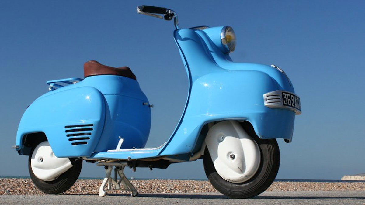 Motobecane es una marca francesa, ya desaparecida, con éxitos tan importantes en su historia como la famosa Mobylette, que en los años 50 entró en esta vorágine de los scooters. Su primer scooter es ese 125 SC de 2T y 4,5 CV de 1952, de líneas atractivas y elegantes, dotado con llantas de 8″, 80 kg de peso y que se fabricó hasta 1956.