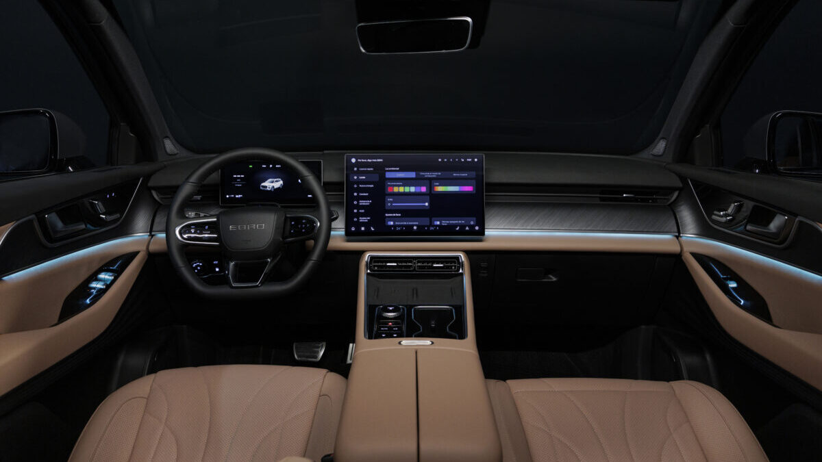 El S900 es un coche discreto en líneas -no en sentido peyorativo-, no es tan llamativo como otros modelos asiáticos que tendrán un peor envejecimiento estético. Ebro vuelve a apostar por algo que sabe que funciona en nuestro país y en Europa aunque el máximo mandatario de la marca, Pedro Calef, nos confiesa que llegará el momento de hacer cosas más arriesgadas. A nivel de calidades el coche llama la atención. Tolerancias bien trabajadas para ser mínimas y homogéneas. Ya dentro, buenos materiales y buenos ajustes, todo ello arropado con un equipamiento que nos hace mirar más arriba: me quedo con el head-up display frontal sobre luneta delantera, con ese cuadro frontal de 10,25 pulgadas y la pantalla central de 15,6” -habrá que ver luego el funcionamiento-. También me llama la atención el mimo para todos los ocupantes -como ejemplo me quedo con masaje en plazas delanteras, salidas de aireación centrales y laterales para pasajeros traseros y paso a la tercera fila con accionamiento eléctrico-. En capacidades de maletero, te tocará jugar con un mínimo de 143 litros con las siete plazas desplegadas, con 448 o 819 litros con cinco plazas dependiendo de altura hasta bandeja o techo, y 2.065 litros con solo las dos plazas delanteras operativas. Otros dos detalles diferenciadores: altavoces en los reposacabezas delanteros o asiento del copiloto completamente reclinable.